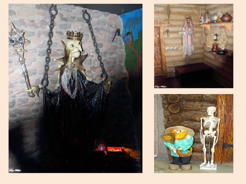 Также здесь будут сокровища над какими злодей «чахнет». Можно будет заглянуть на кухню к Бабе-Яге. Там и русская печь с ухватами и чугунки да котелки с булькающим варевом. Ступа с помелом, кот учёный на пеньке развалился, кикимора в окно заглянет, а скелет в цилиндре и во фраке поприветствует гостей. Змей Горыныч тоже здесь имеется, только в целях безопасности он не огнедышащий.