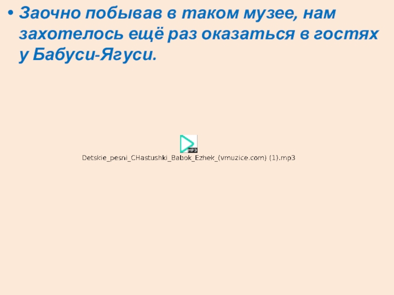 Слайд 45Заочно побывав в таком музее, нам захотелось ещё раз оказаться в