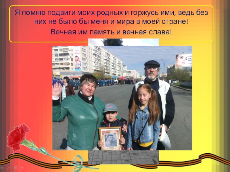 Слайд 29Я помню подвиги моих родных и горжусь ими, ведь без них