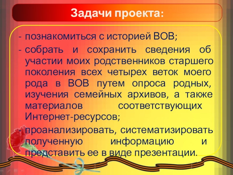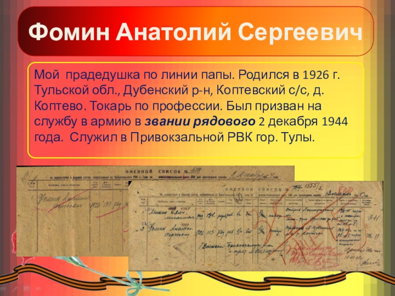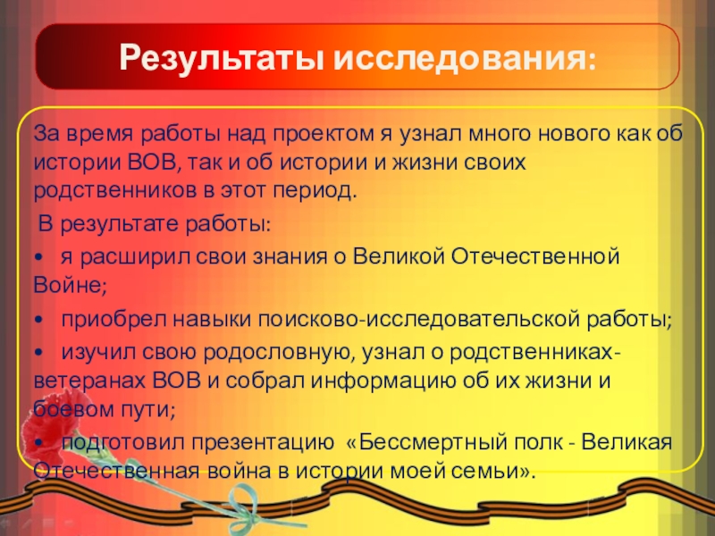 • подготовил презентацию «Бессмертный полк - Великая Отечественная война в истории моей семьи».