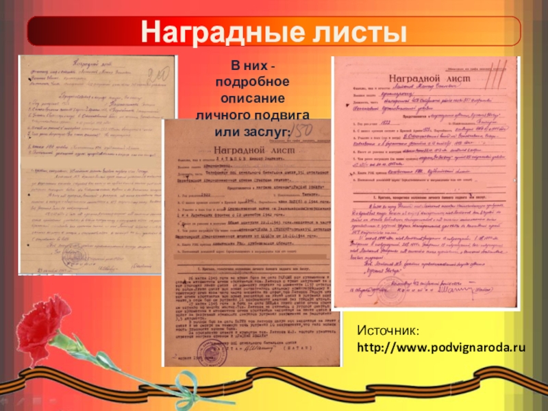 сведения о наградах периода войны http://www.podvignaroda.ru