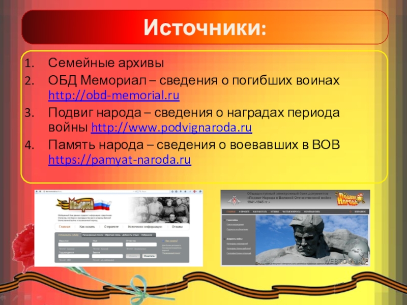 ОБД Мемориал – сведения о погибших воинах http://obd-memorial.ru