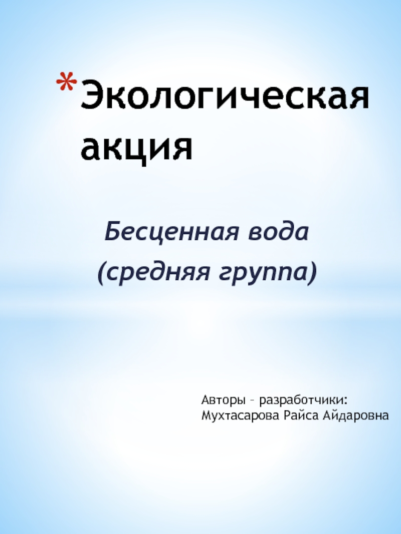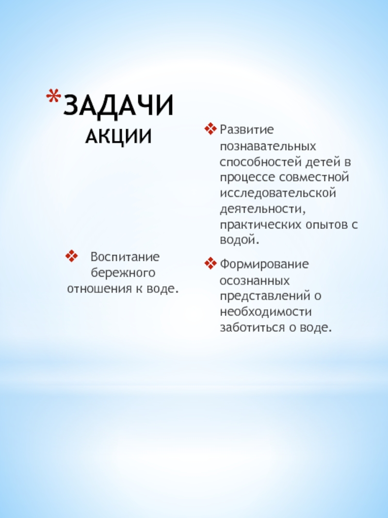 Воспитание бережного отношения к воде.