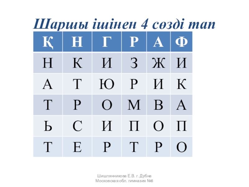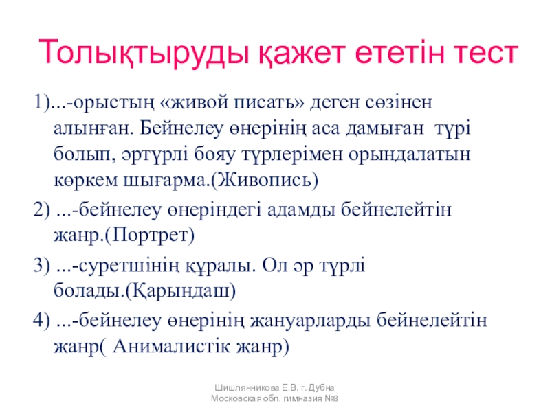Шишлянникова Е.В. г. Дубна Московская обл. гимназия №8