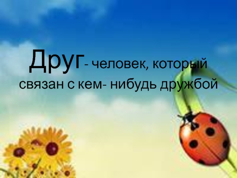 Слайд 3Друг- человек, который связан с кем- нибудь дружбой