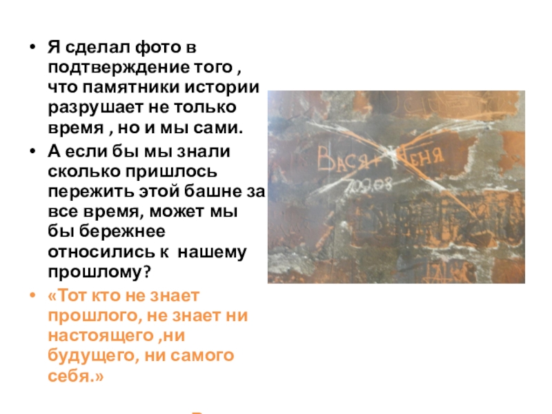 Слайд 17Я сделал фото в подтверждение того , что памятники истории разрушает