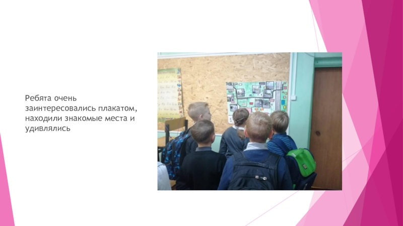 Слайд 31Ребята очень заинтересовались плакатом, находили знакомые места и удивлялись