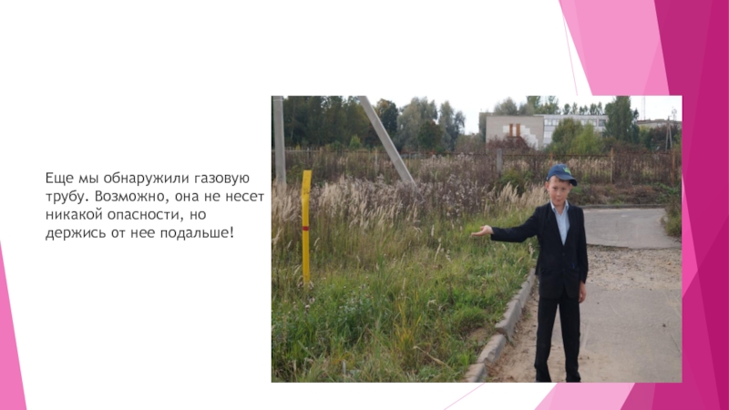 Слайд 13Еще мы обнаружили газовую трубу. Возможно, она не несет никакой опасности,