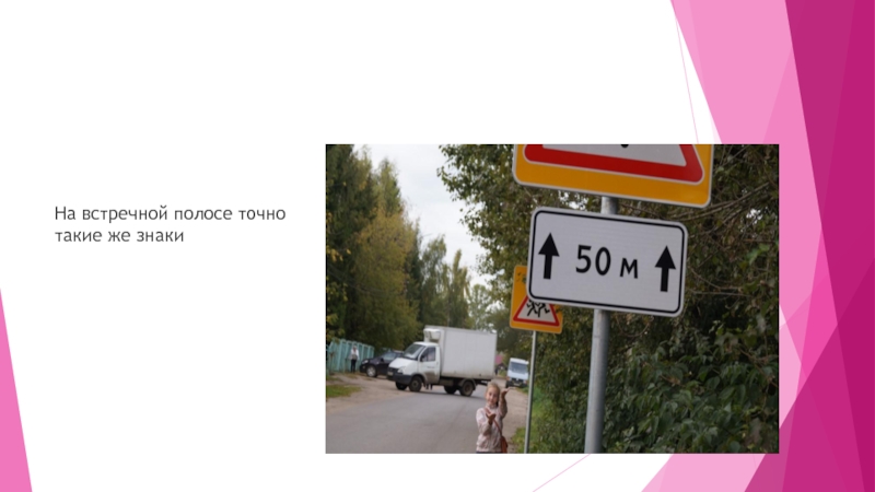 Слайд 23На этой же дороге мы встретили ряд других знаков, которые предупреждают