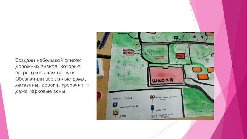 Слайд 6Создали небольшой список дорожных знаков, которые встретились нам на пути. Обозначили