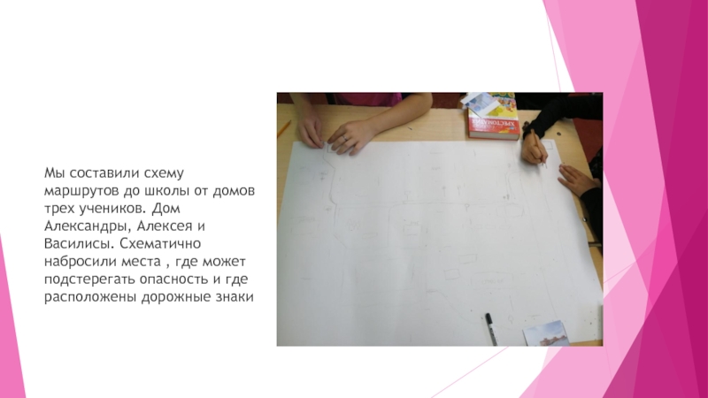 Александры, Алексея и Василисы. Схематично набросили места , где может подстерегать опасность и где расположены дорожные знаки