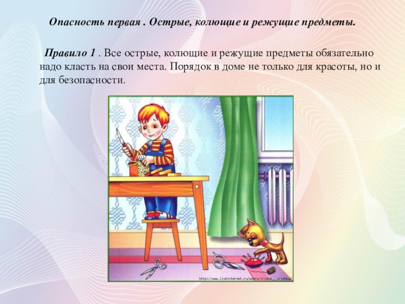 Слайд 2Опасность первая . Острые, колющие и режущие предметы.