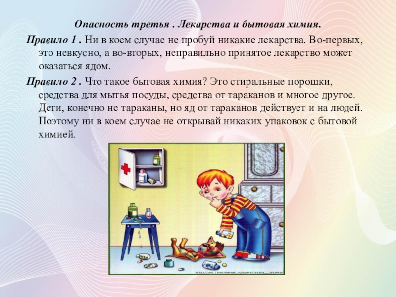 Слайд 4Опасность третья . Лекарства и бытовая химия.
