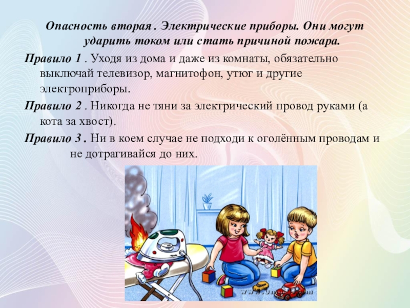 Слайд 3Опасность вторая . Электрические приборы. Они могут ударить током или стать