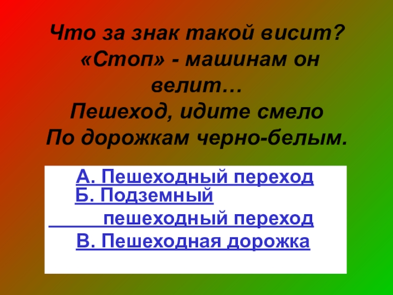 А. Пешеходный переход Б. Подземный