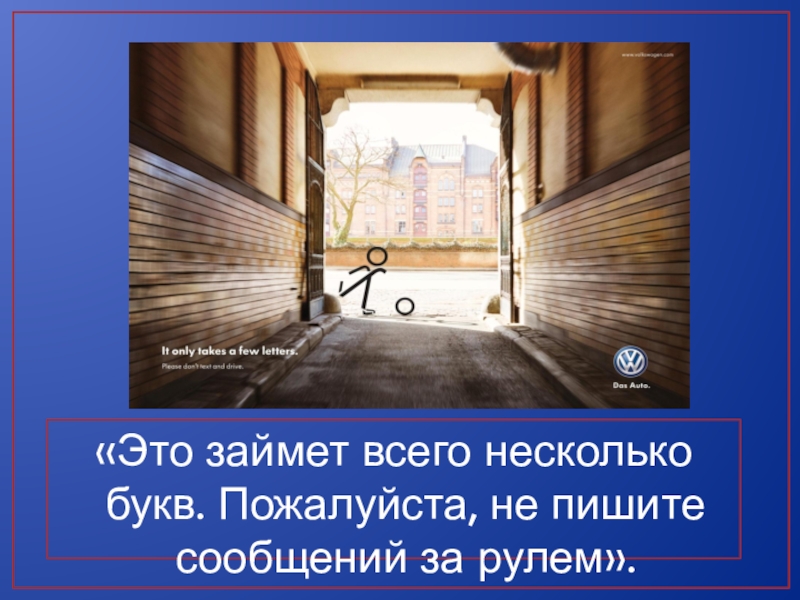 Слайд 16«Это займет всего несколько букв. Пожалуйста, не пишите сообщений за рулем».