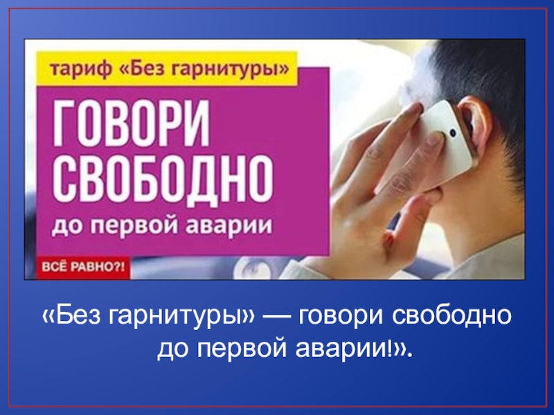 Слайд 17«Без гарнитуры» — говори свободно до первой аварии!».