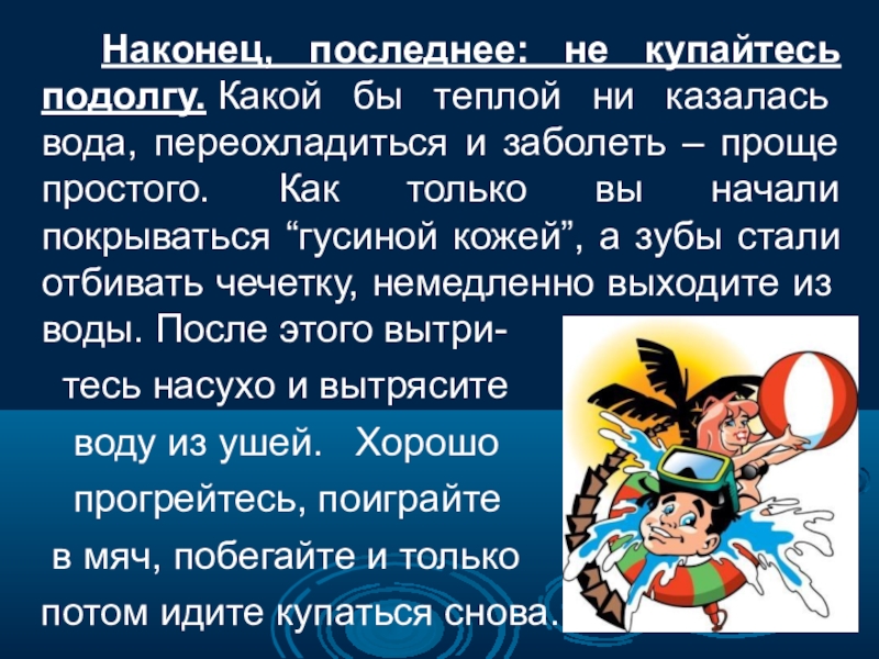 Не входите в воду разгорячёнными, лучше выждать какое-то время.