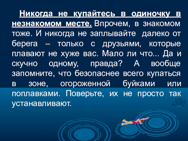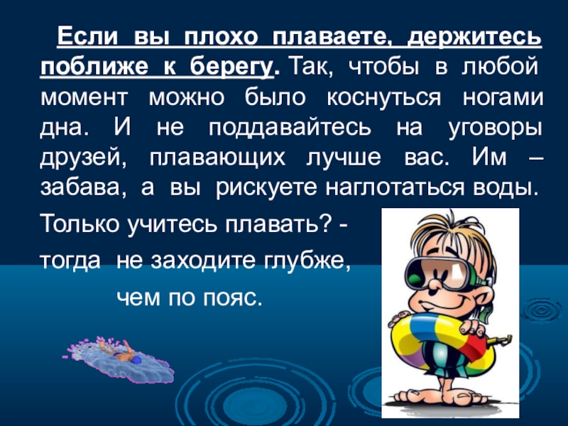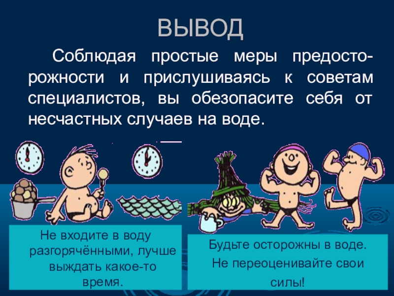 Будьте осторожны в воде.