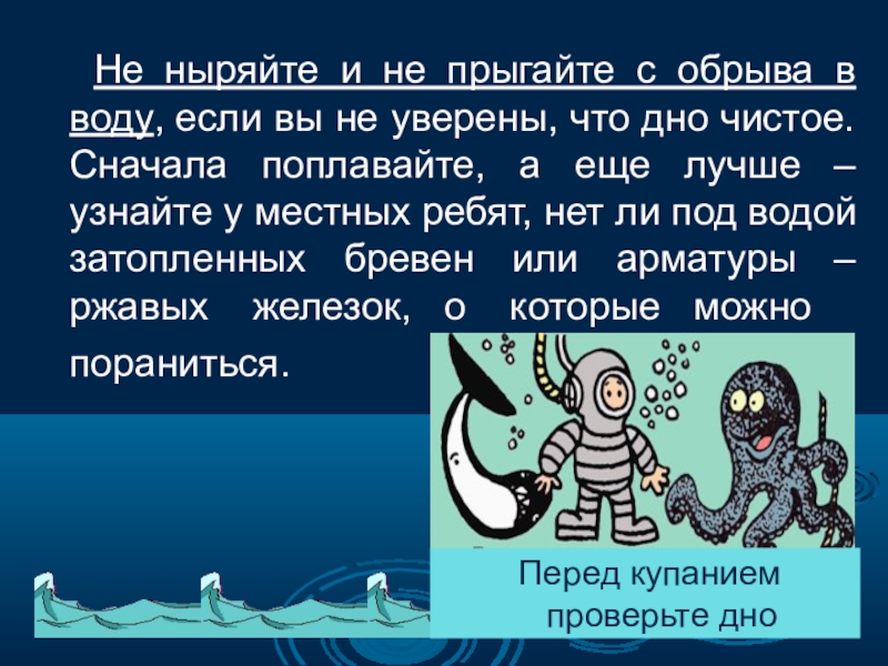 Перед купанием проверьте дно