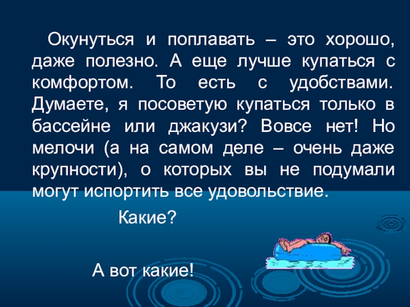 Входите в воду не сразу,