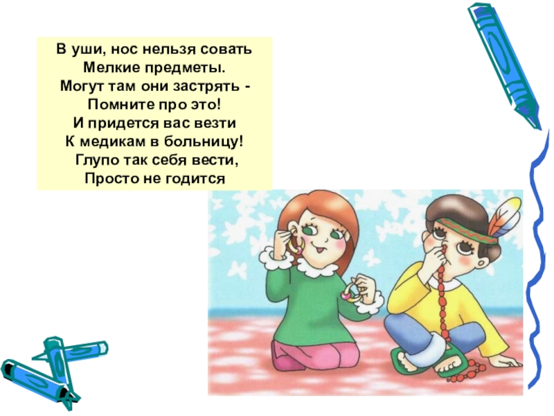 Слайд 9В уши, нос нельзя совать