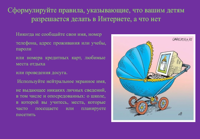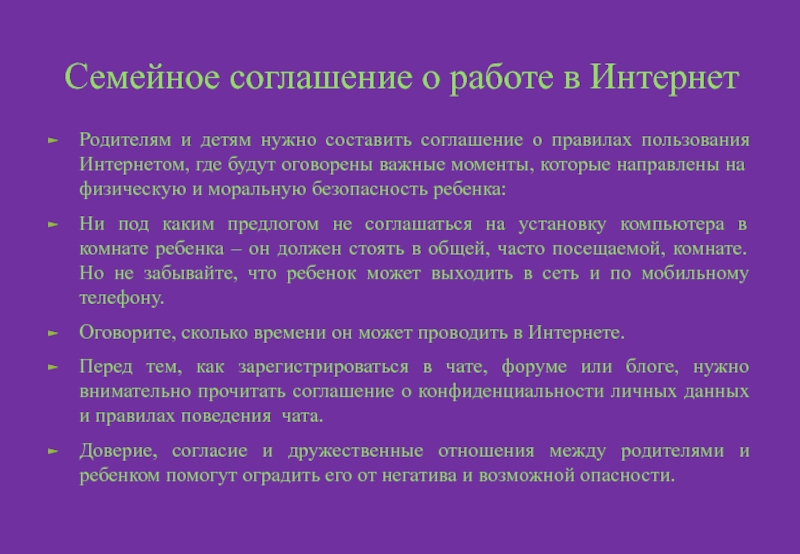 Сформулируйте правила, указывающие, что вашим детям разрешается делать в Интернете, а что нет