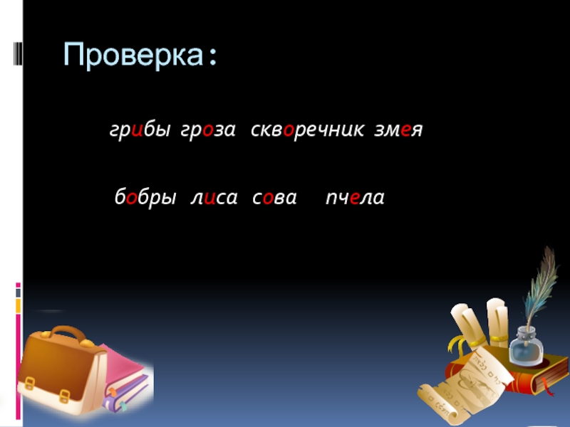 Проверка:     грибы гроза  скворечник змея