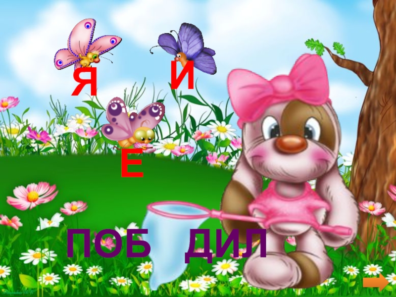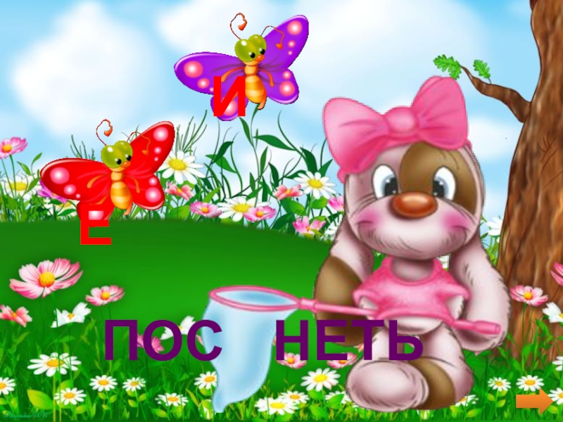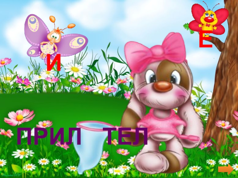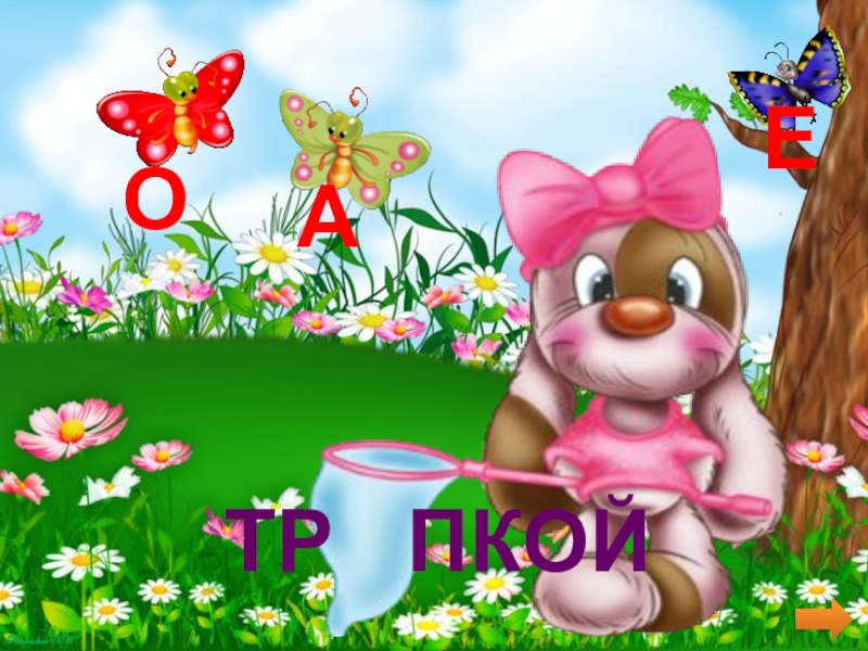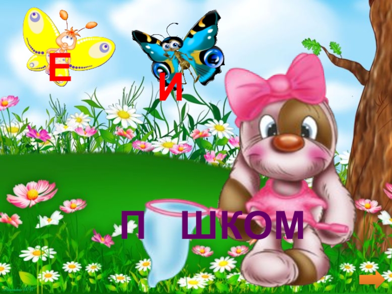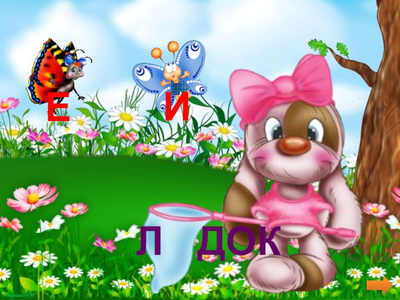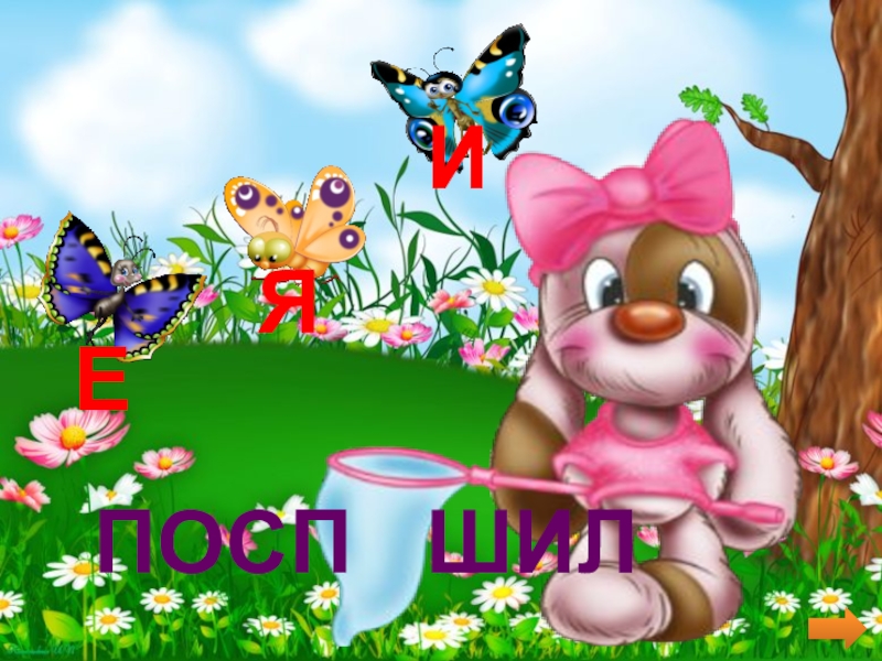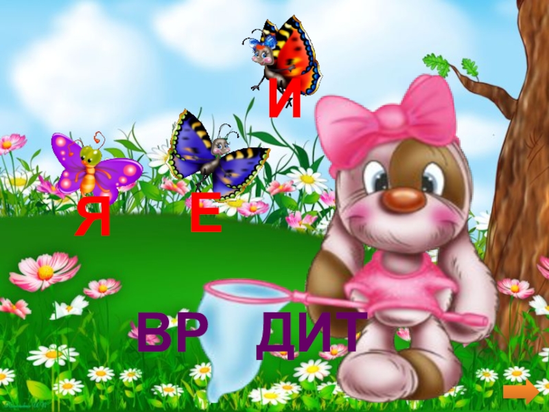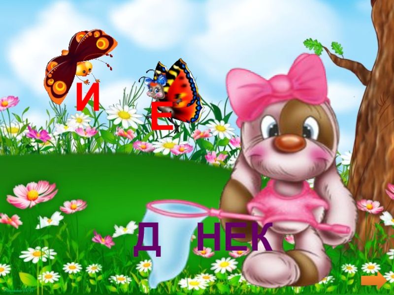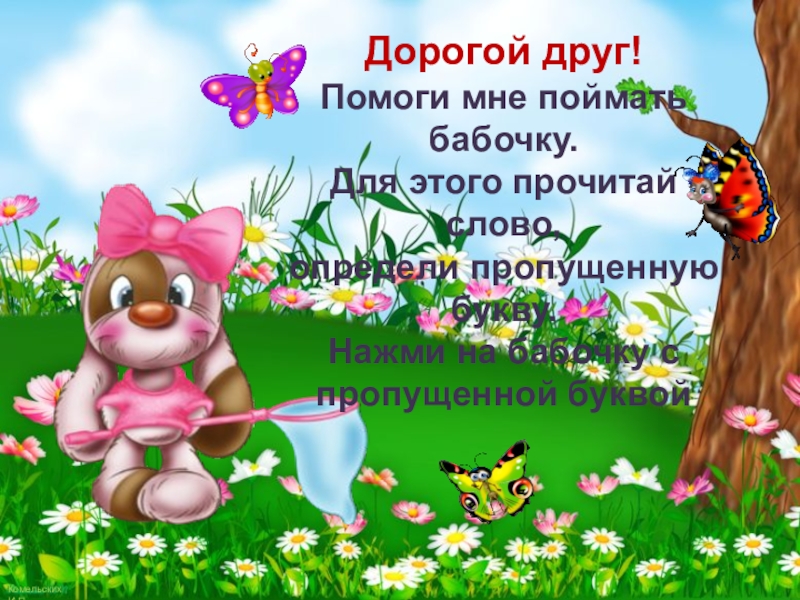 Комельских И ПДорогой друг!Помоги мне поймать бабочку. Для этого прочитай слово, определи пропущенную букву. Нажми на бабочку