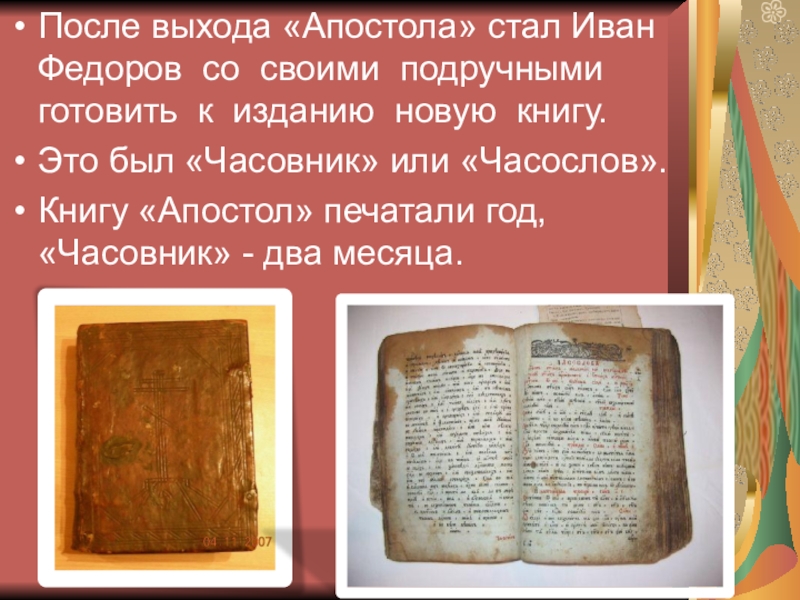 Книгу «Апостол» печатали год, «Часовник» - два месяца.