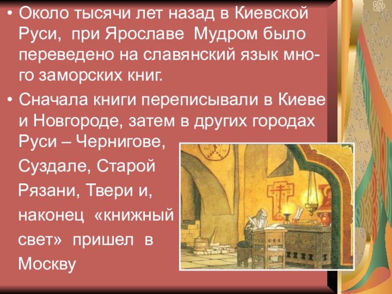 Слайд 5Около тысячи лет назад в Киевской Руси, при Ярославе Мудром было