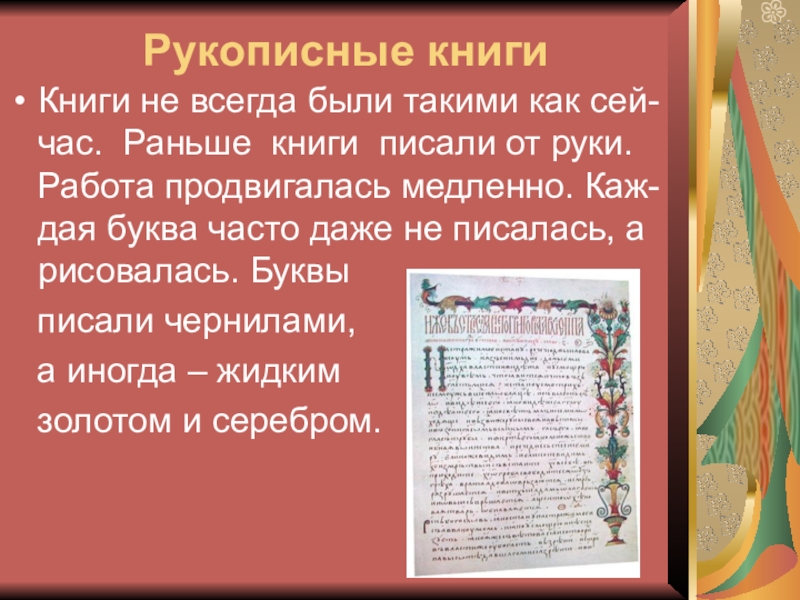 Книги не всегда были такими как сей-час. Раньше книги писали