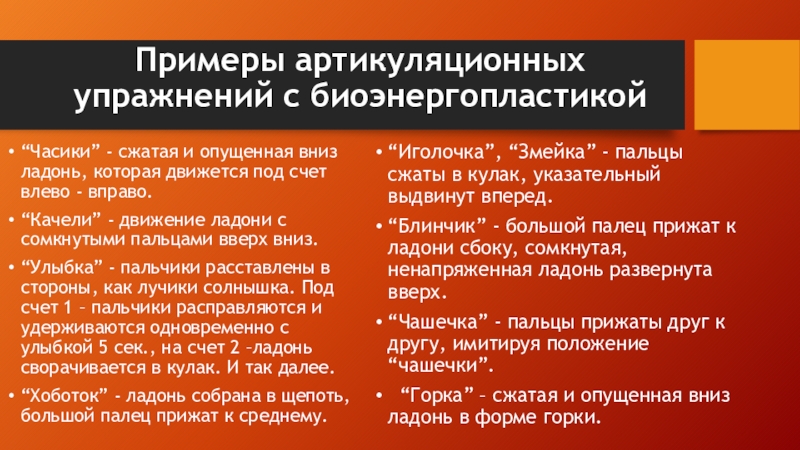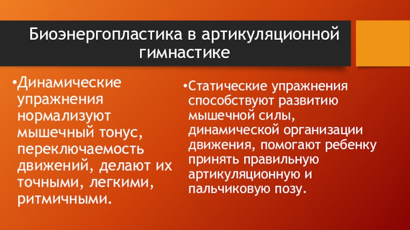 Статические упражнения способствуют развитию мышечной силы, динамической организации движения, помогают ребенку принять правильную артикуляционную и пальчиковую позу.