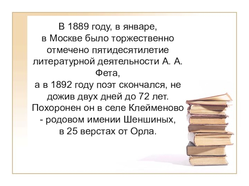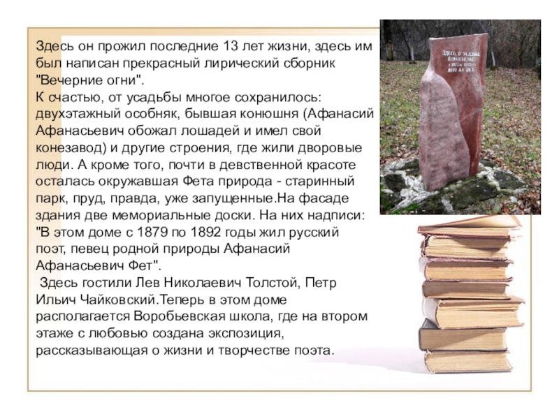Хозяином Фет оказался превосходным, в 1877 г. бросил Степановку и купил за 105 000 рублей имение Воробьевку в Щигровском уезде, Курской губернии, близ Коренной Пустыни; под конец жизни состояние Афанасия Фета дошло до величины, которую можно назвать богатством.