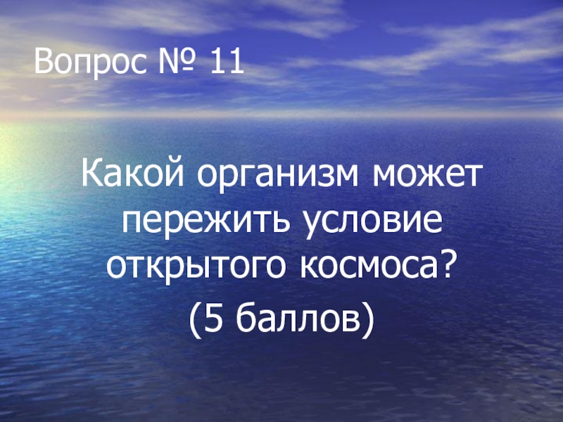 Вопрос № 11Какой организм может пережить условие открытого космоса? (5 баллов)