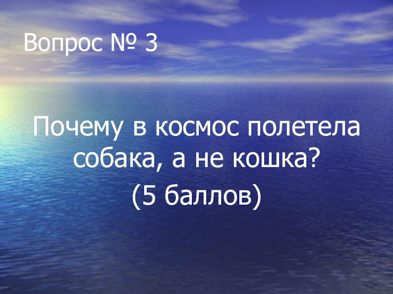 Вопрос № 3Почему в космос полетела собака, а не кошка? (5 баллов)