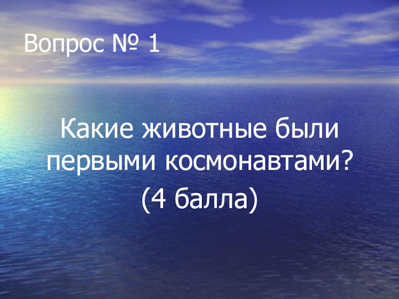 Вопрос № 1 Какие животные были первыми космонавтами?(4 балла)