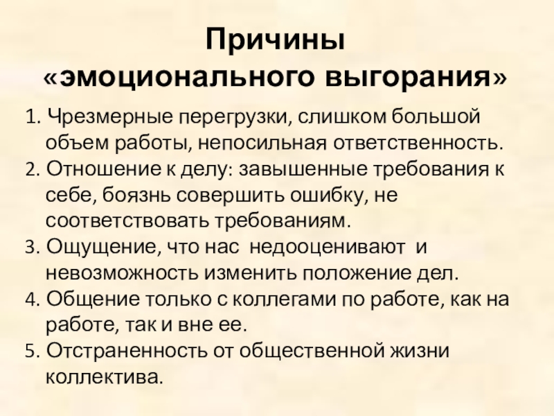 1. Чрезмерные перегрузки, слишком большой объем работы, непосильная ответственность.