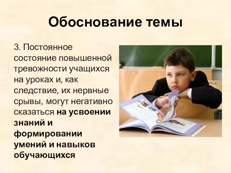 3. Постоянное состояние повышенной тревожности учащихся на уроках и, как