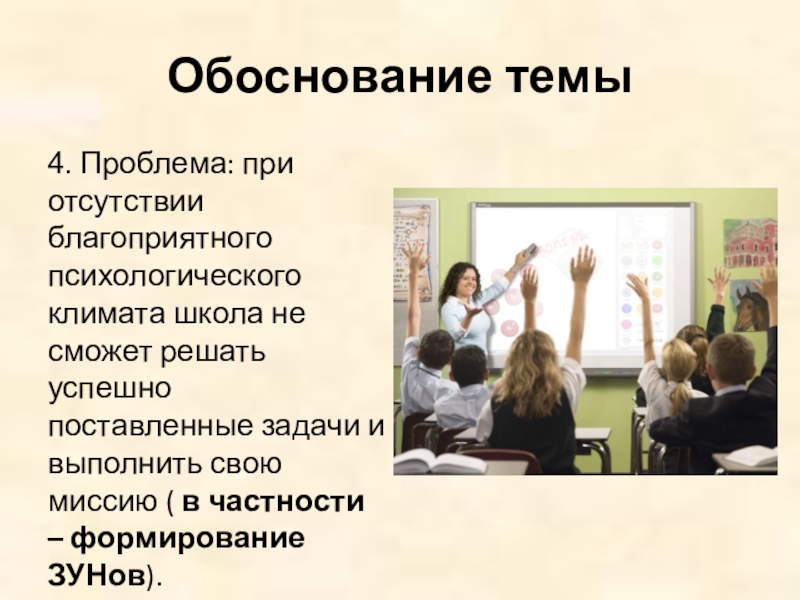 4. Проблема: при отсутствии благоприятного психологического климата школа не сможет