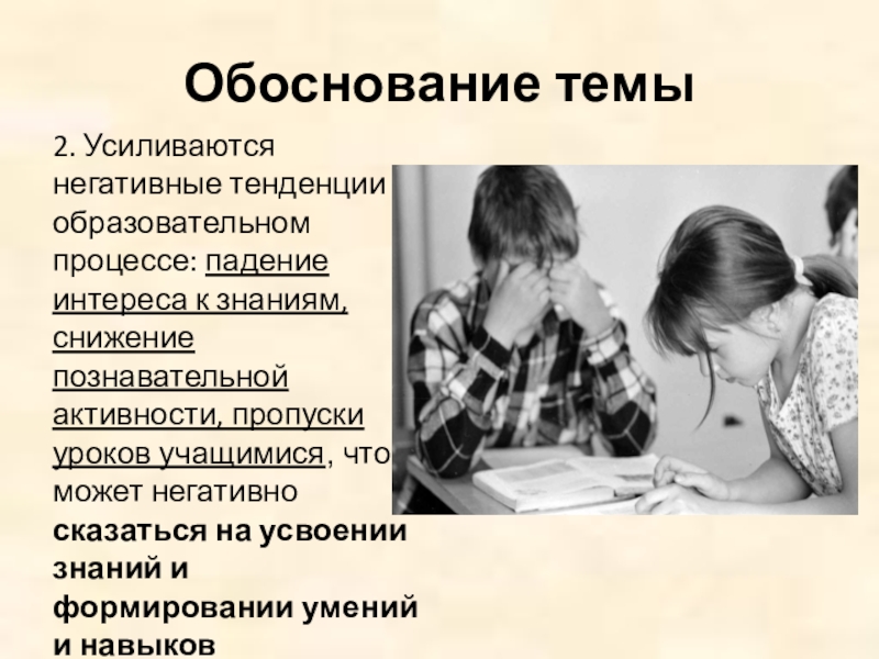 2. Усиливаются негативные тенденции в образовательном процессе: падение интереса к