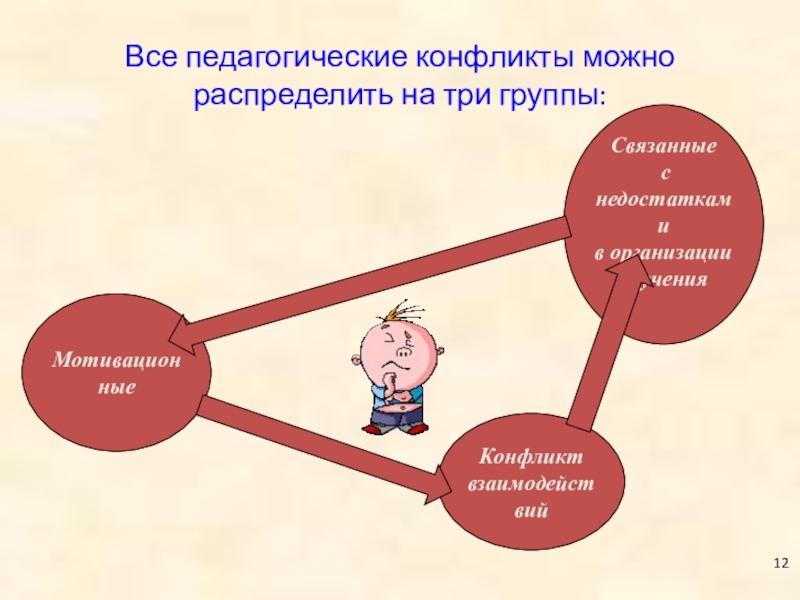 Слайд 12Все педагогические конфликты можно распределить на три группы: