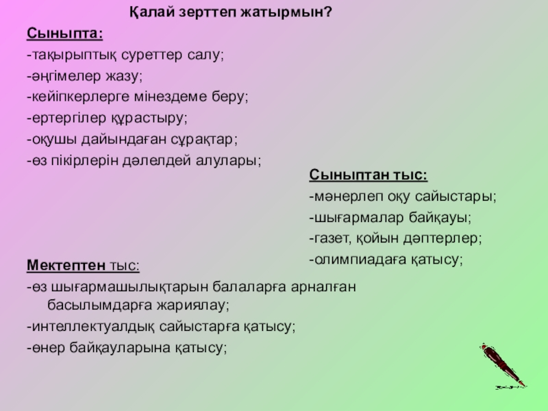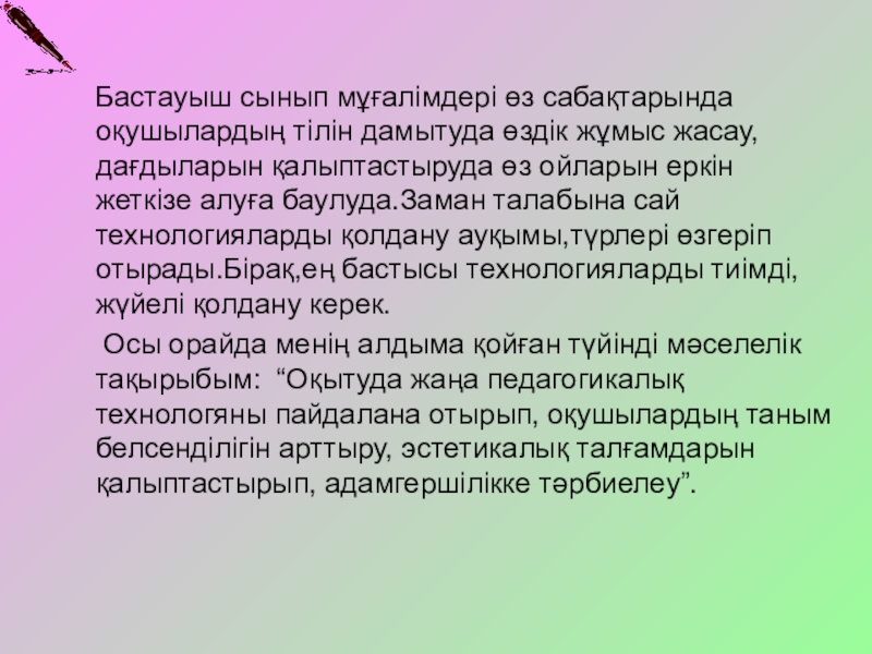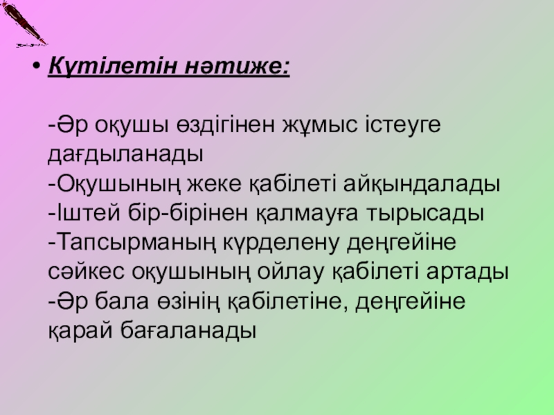 оқушының педагогикалық-психологиялық ерекшеліктерін ескеру;