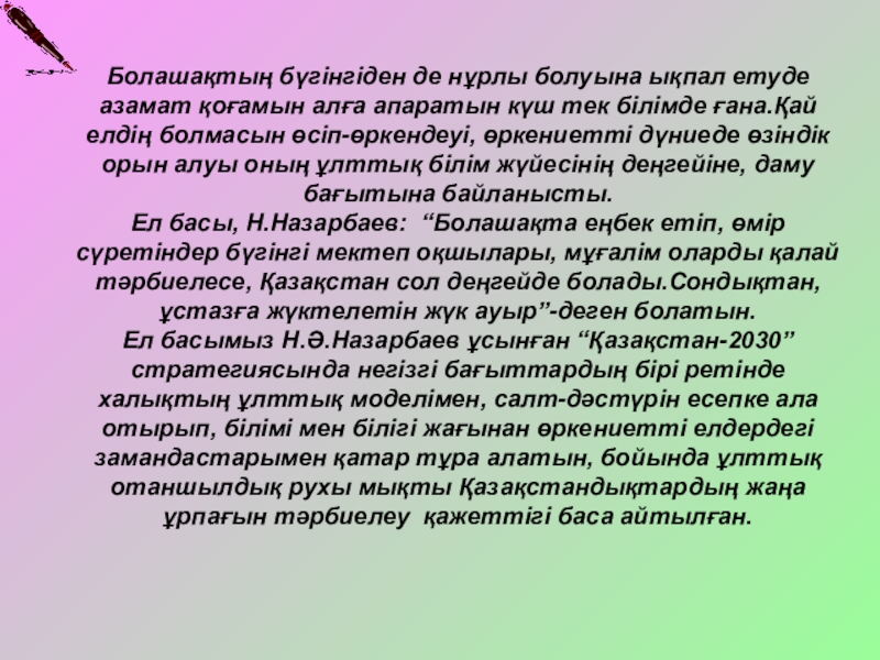 міндетті деңгейдегі білімді қалыптастыра отырып, мүмкіндік деңгейлерін ашу;