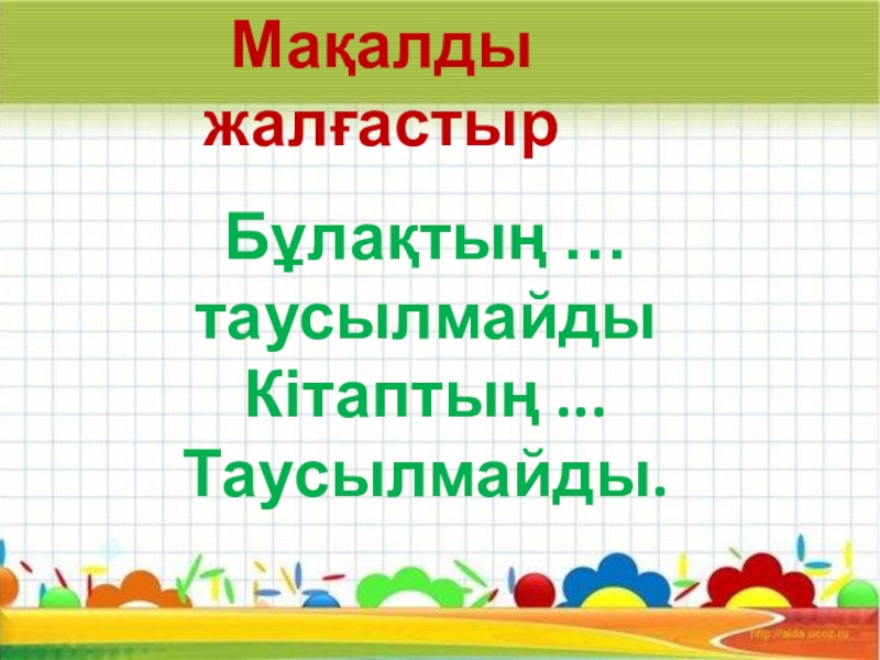 Бұлақтың … таусылмайдыКітаптың ... Таусылмайды.Мақалды жалғастыр