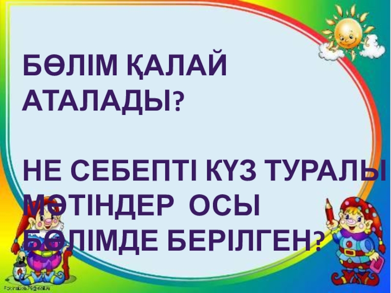 БӨЛІМ ҚАЛАЙ АТАЛАДЫ?НЕ СЕБЕПТІ КҮЗ ТУРАЛЫ МӘТІНДЕР ОСЫ БӨЛІМДЕ БЕРІЛГЕН?
