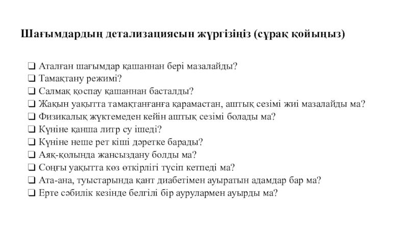 Слайд 5Шағымдардың детализациясын жүргізіңіз (сұрақ қойыңыз)
