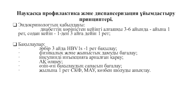 Слайд 16Науқасқа профилактика және диспансеризация ұйымдастыру принциптері.