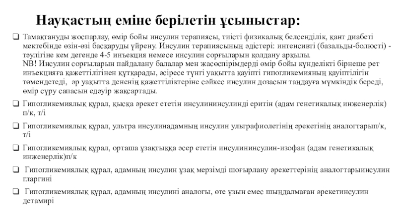 Слайд 14 Науқастың еміне берілетін ұсыныстар:
