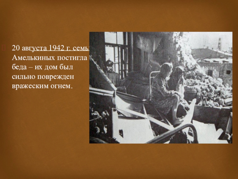 20 августа 1942 г. семью Амелькиных постигла беда – их дом был сильно поврежден вражеским огнем.